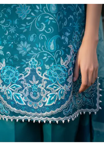 Embroidered Sleeves Motif on Dyed Organza 2 Pieces