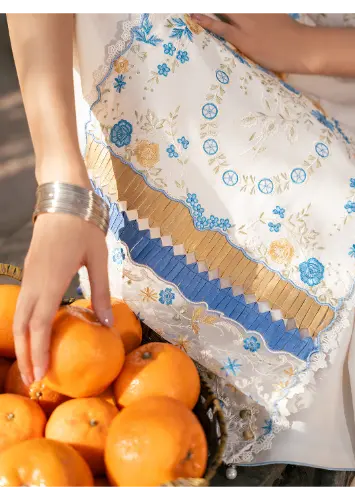 Embroidered Trouser Lace on Dyed Organza 1 Yard
